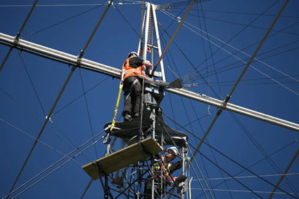 Bild: Arbete med stor Log-periodisk antenn på 45m hög mast.